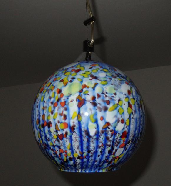 Lampa wisząca z różnokolorową szkalną kulą, 58 cm - wysokość, 17 cm średnica kuli